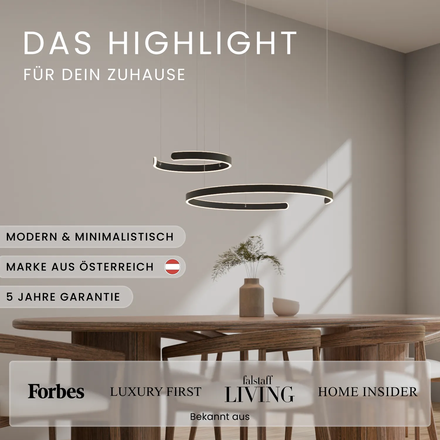 Mit 80 W, 4950 Lumen und CRI 90+ sorgt NOVIO für flickerfreies, natürliches Licht – ideal für Essbereich, Küche oder Wohnzimmer. Die Aufhängung ist höhenverstellbar, ganz ohne Kürzen der Kabel.