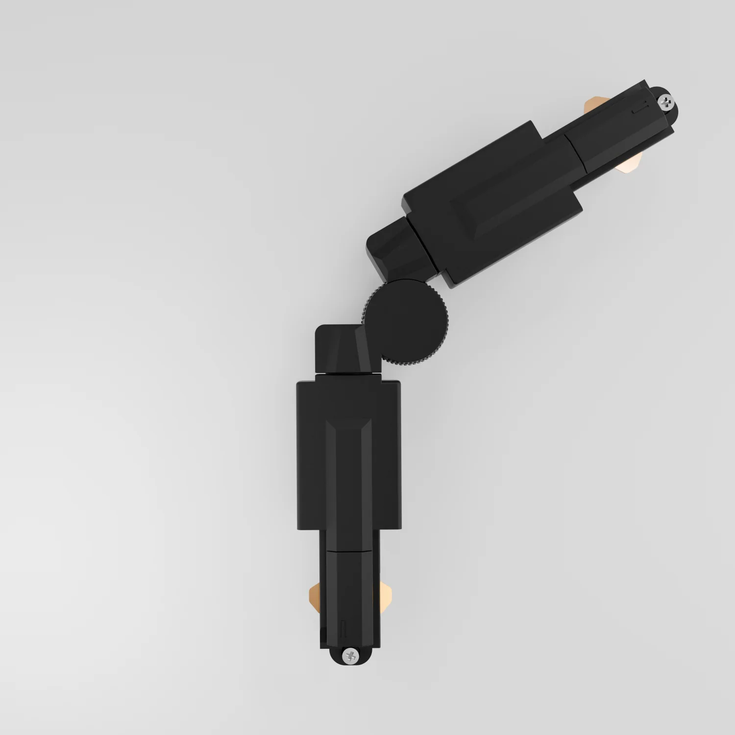 Flexibler Eckverbinder mit frei wählbarem Winkel. Perfekt für individuelle Schienenverläufe außerhalb fixer 90°-Winkel.