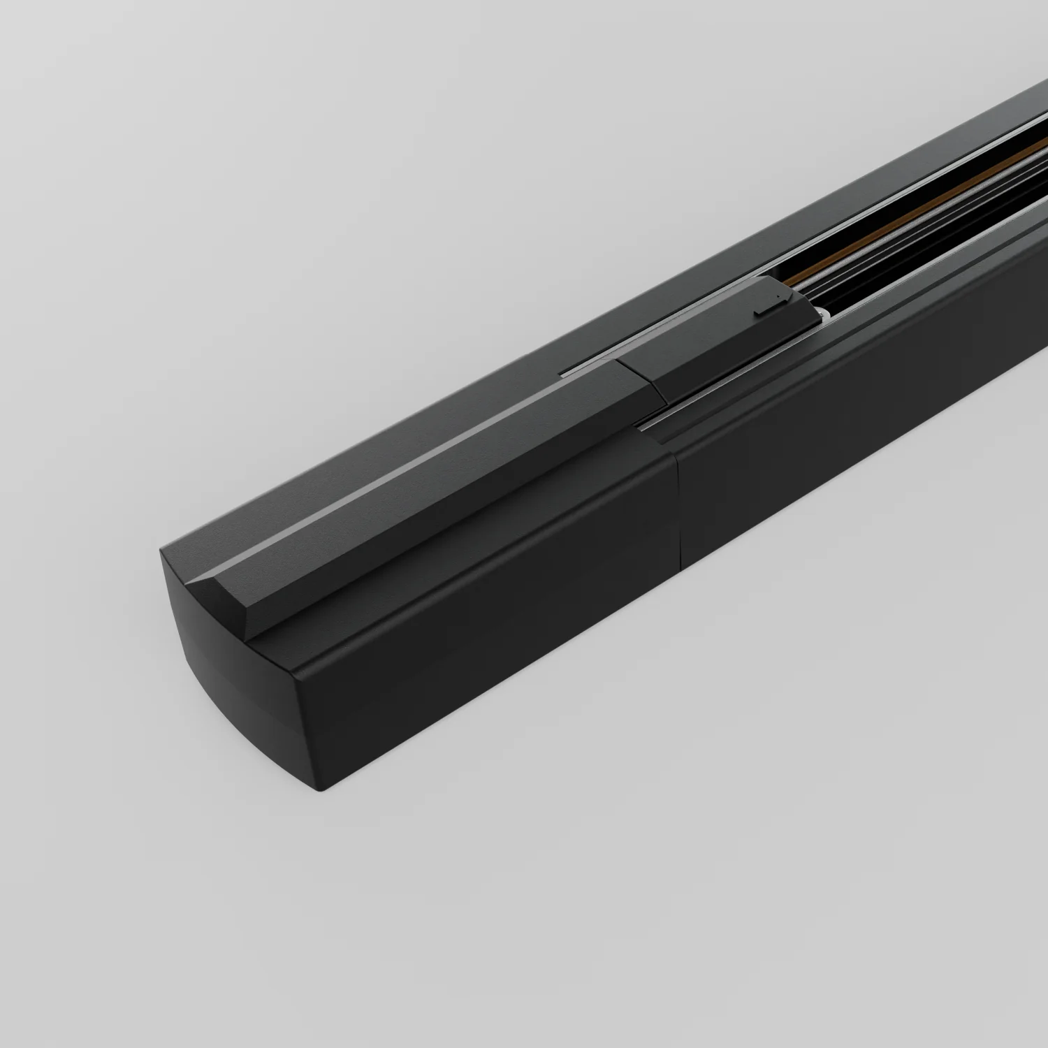 Set bestehend aus Stromschiene, Endkappe und Endeinspeisung. Ideal als Basis für den Aufbau eines individuellen Schienensystems mit direktem Stromanschluss. (Gesamtlänge 1m, Stromschienenlänge: 0,9m)